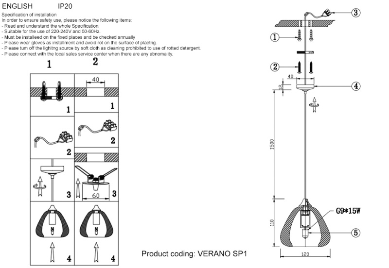 | Длина подвеса | 1500 |